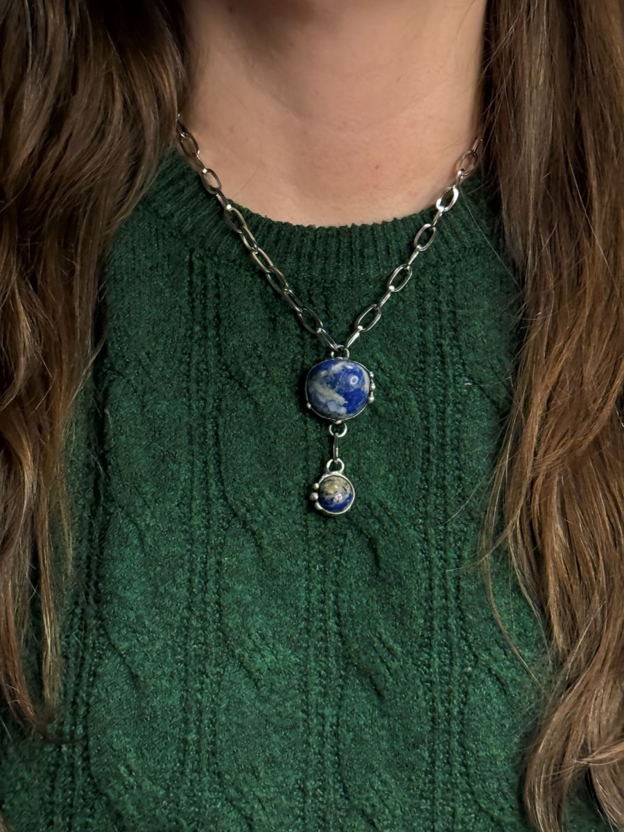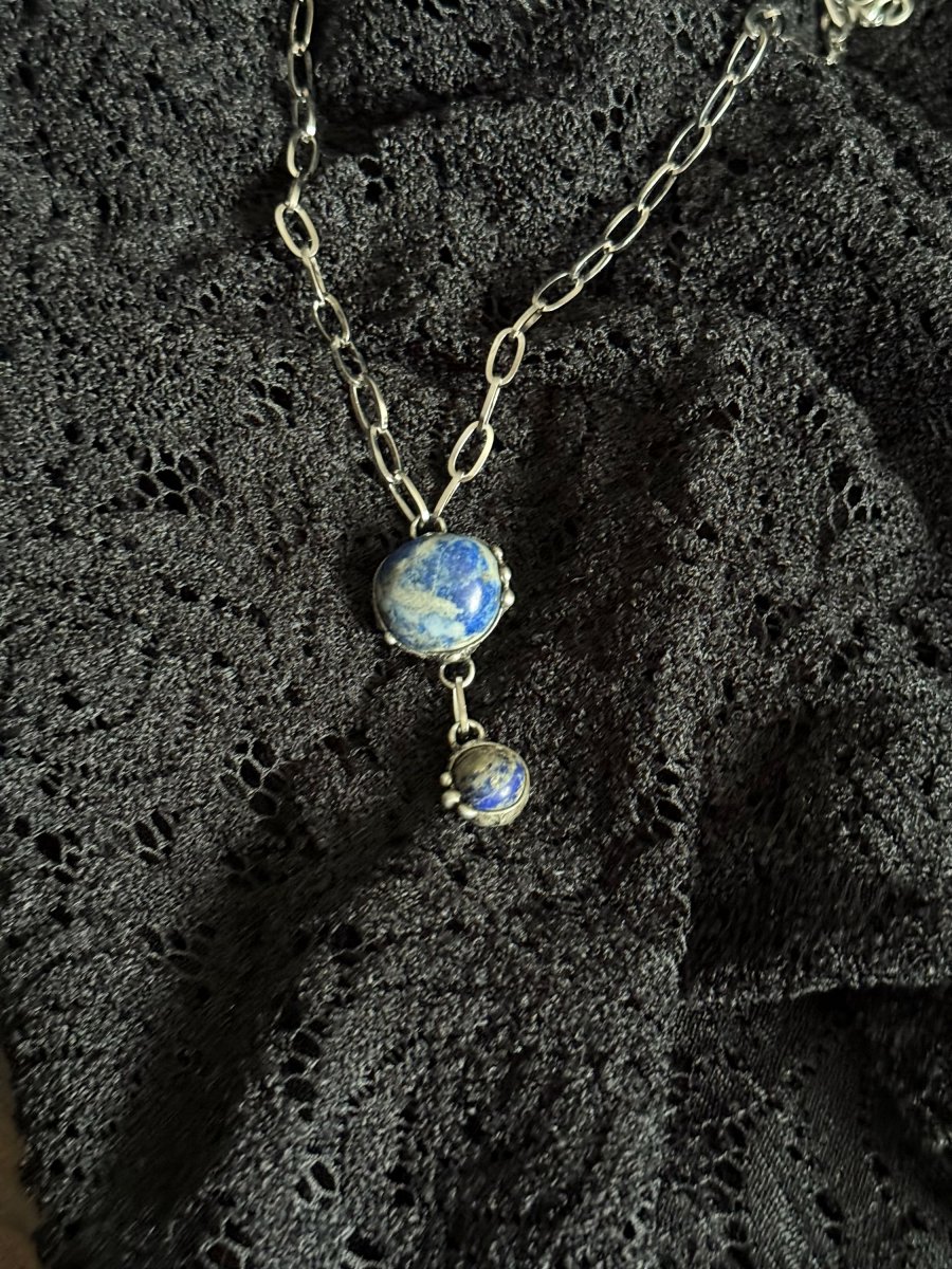 Náhrdelník ze dvou kamenů LAPIS LAZULI na řetízku z chirurgické oceli.