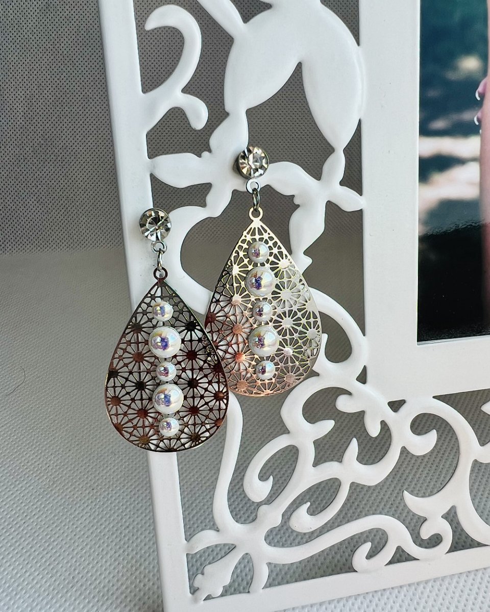 Stylové náušnice z kolekce jemných crystal náušnic. Náušničky mají kamínky kulatého tvaru v perleťové barvě. Náušnice mají napichovací zapínání v přední částí s crystal kamínkem.