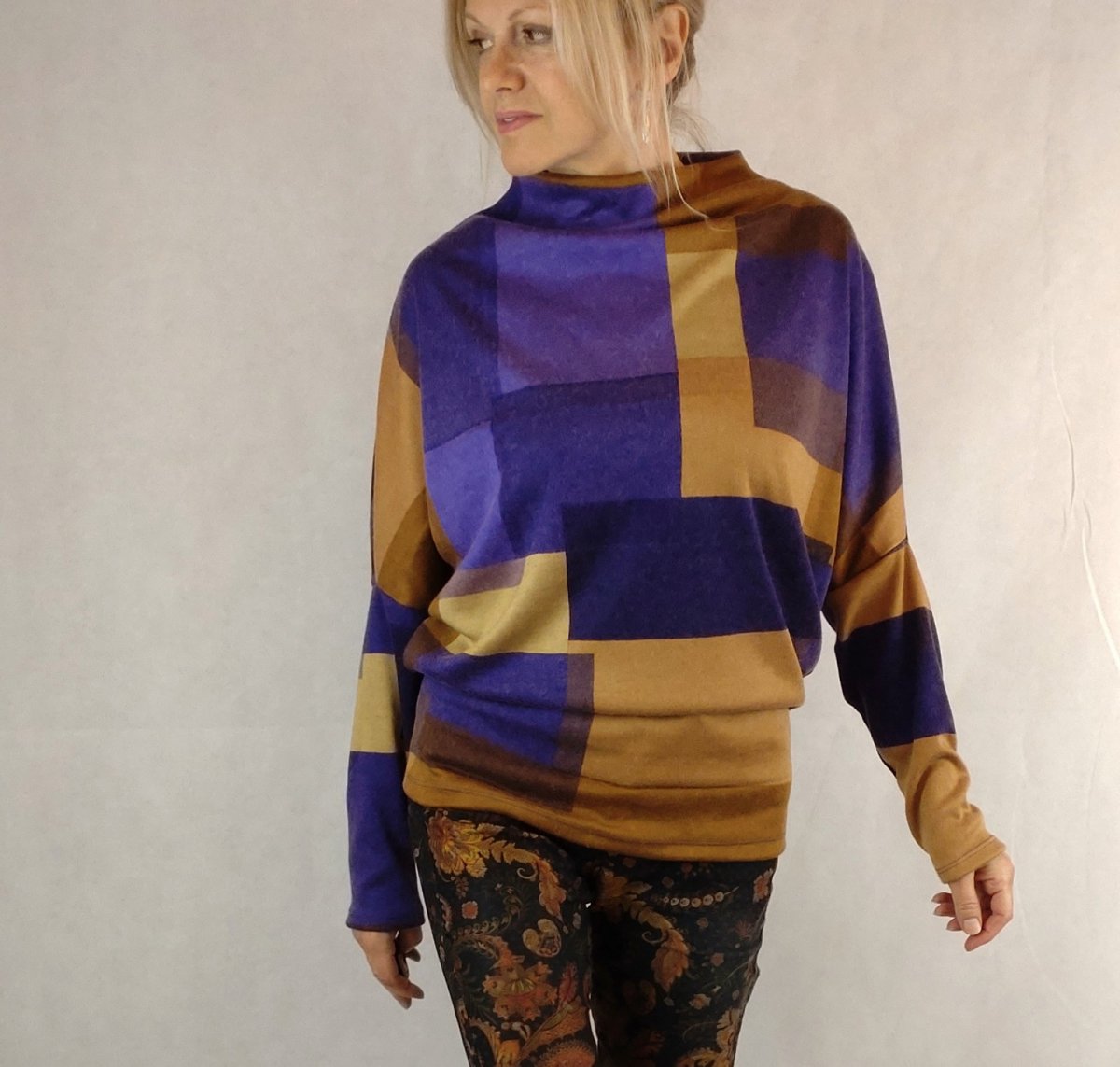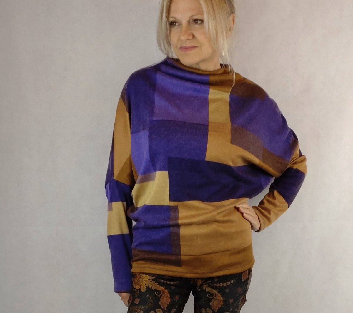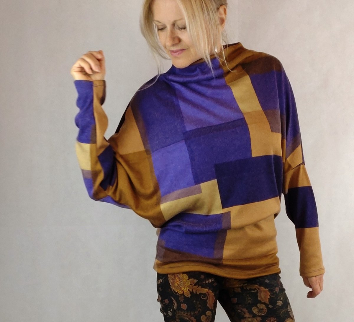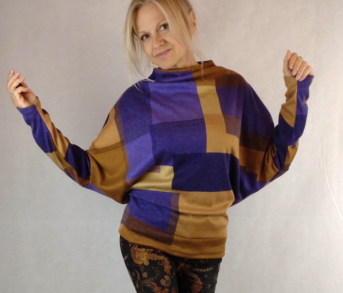 Jednoduchá elegance s rovným výstřihem ke krku a netopýřím rukávem. Lehká pletenina ve složení poyakry/ vlna/spandex