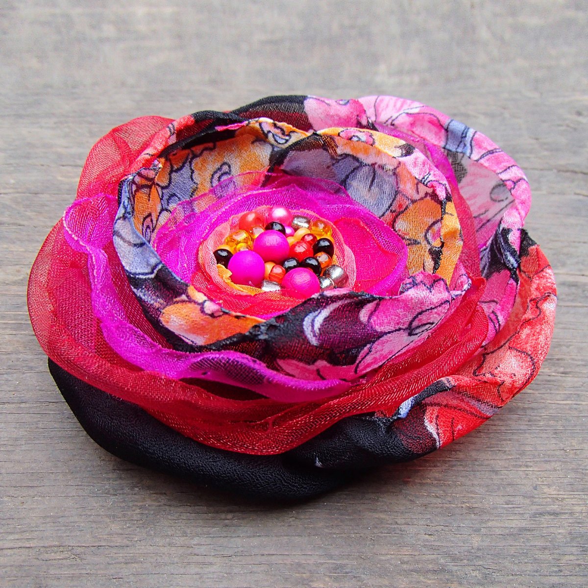Oživte Váš outfit květem ze šifonu organzy. Střed je vyšitý korálky.