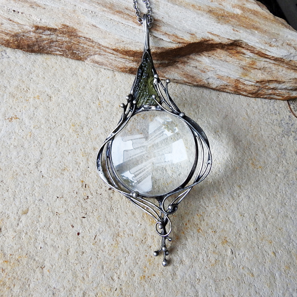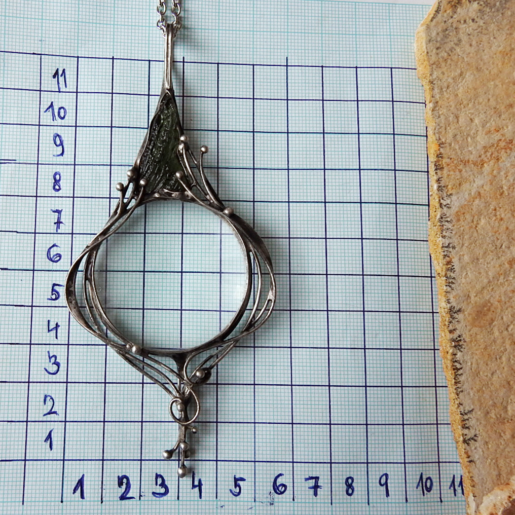 Základ přívěsku tvoří lupa o průměru 4cm a vltavín váhy 1,75 gr.