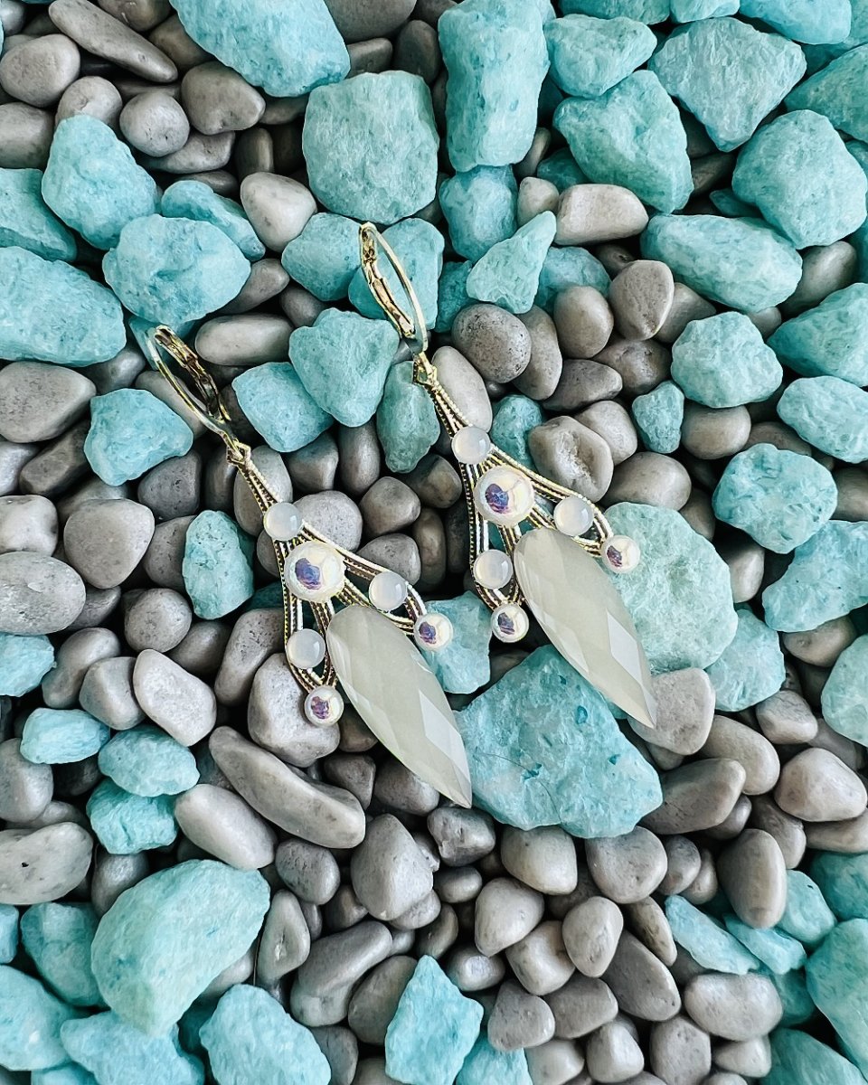 Nádherné bižuterní visací náušnice s kamínky v šedé a perleťové barvě. Dokonale vyniknou k večerním šatům i kancelářskému outfitu. Zapínání je mechanické (zavírací).