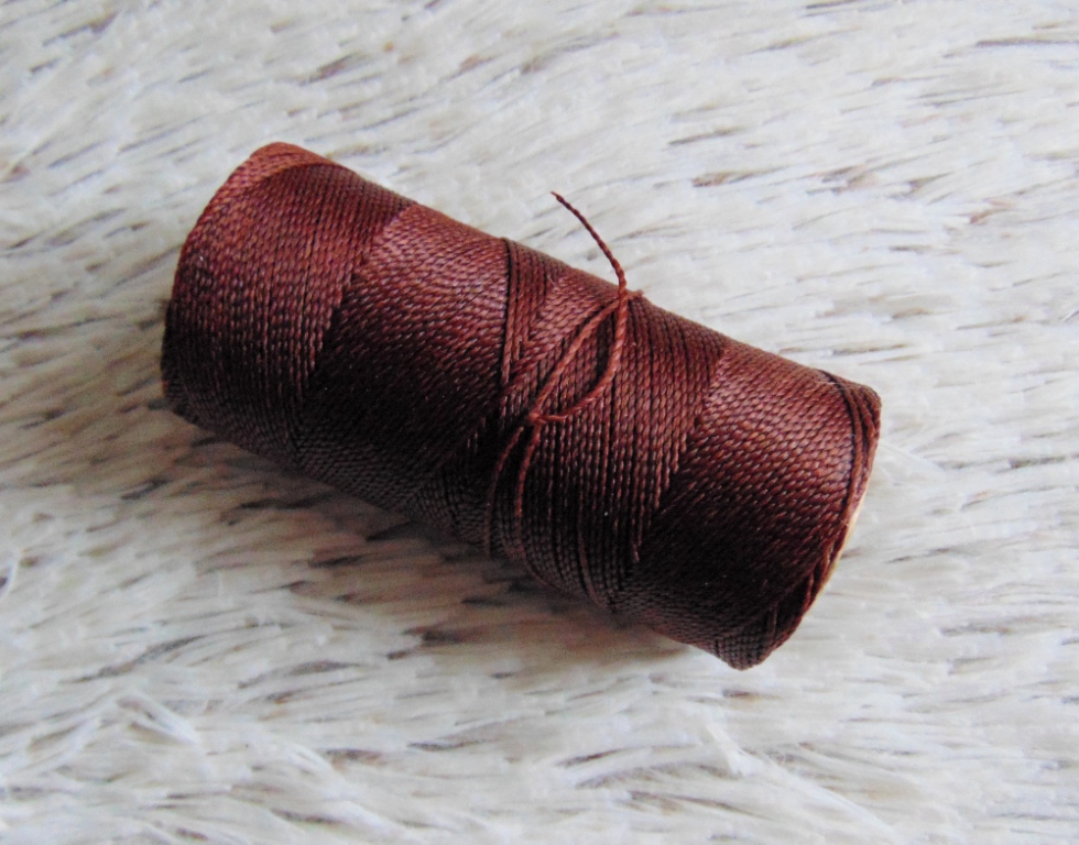Nitě jsou povoskovaný nylon, který při uzlíčkování neklouže a proto uzlíčky drží svůj tvar.