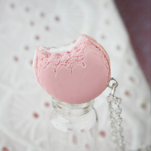 Makronka nakousnutá, fimo náhrdelník vtipný