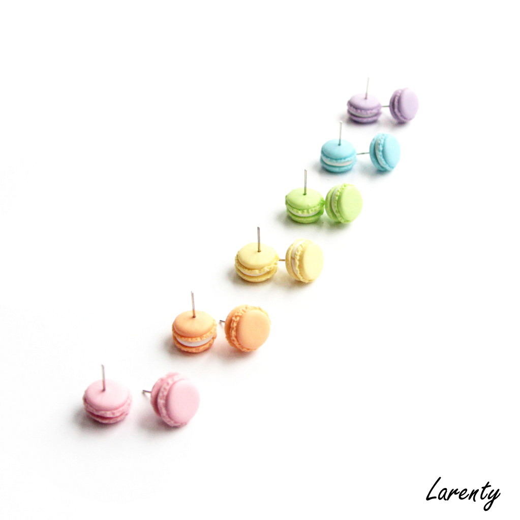 Světle pastelové makronky s vanilkovou náplní. Puzetka je pro větší pevnost vložena do makronky.