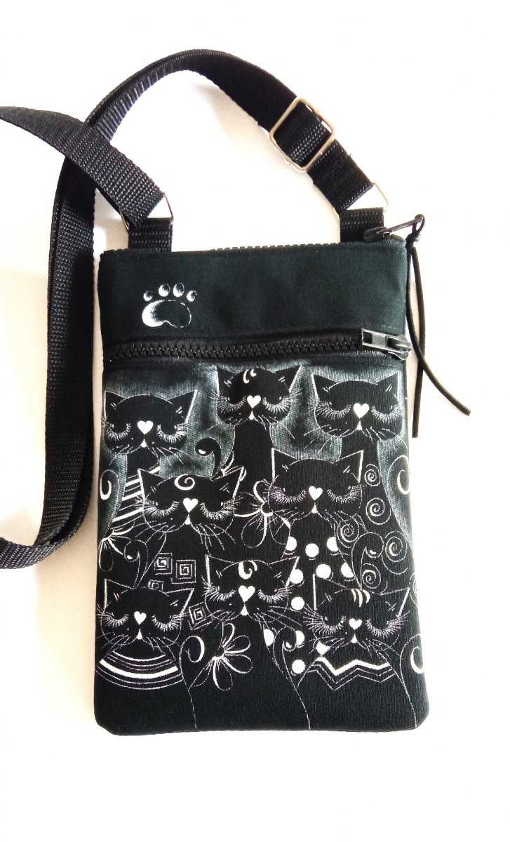 crossbody je ručně šitá z pevné černé 100%bavlny,vyztužená,uvnitř bavlněná podšívka,zapínání na zip,popruh černý a nastavitelný,