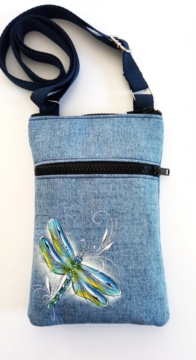 Ručně šitá a malovaná crossbody s obrázkem