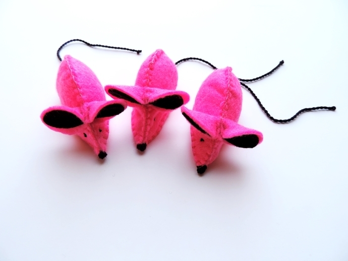 Malá myška ručně šitá z filcu je plněná vatelínem.Ocásek je z krouceného provázku dlouhý cca 10-12 cm.Velikost myšičky je cca 7 cm.Očička i čumáček je vyšívaný.