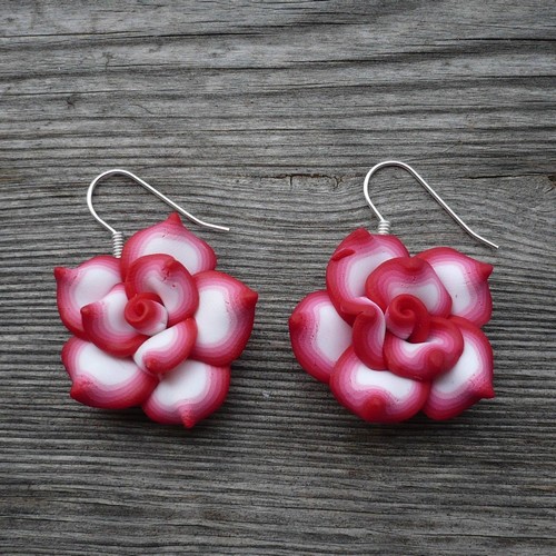 Náušnice jsou tvořeny z fimo korálku v podobě kytičky.