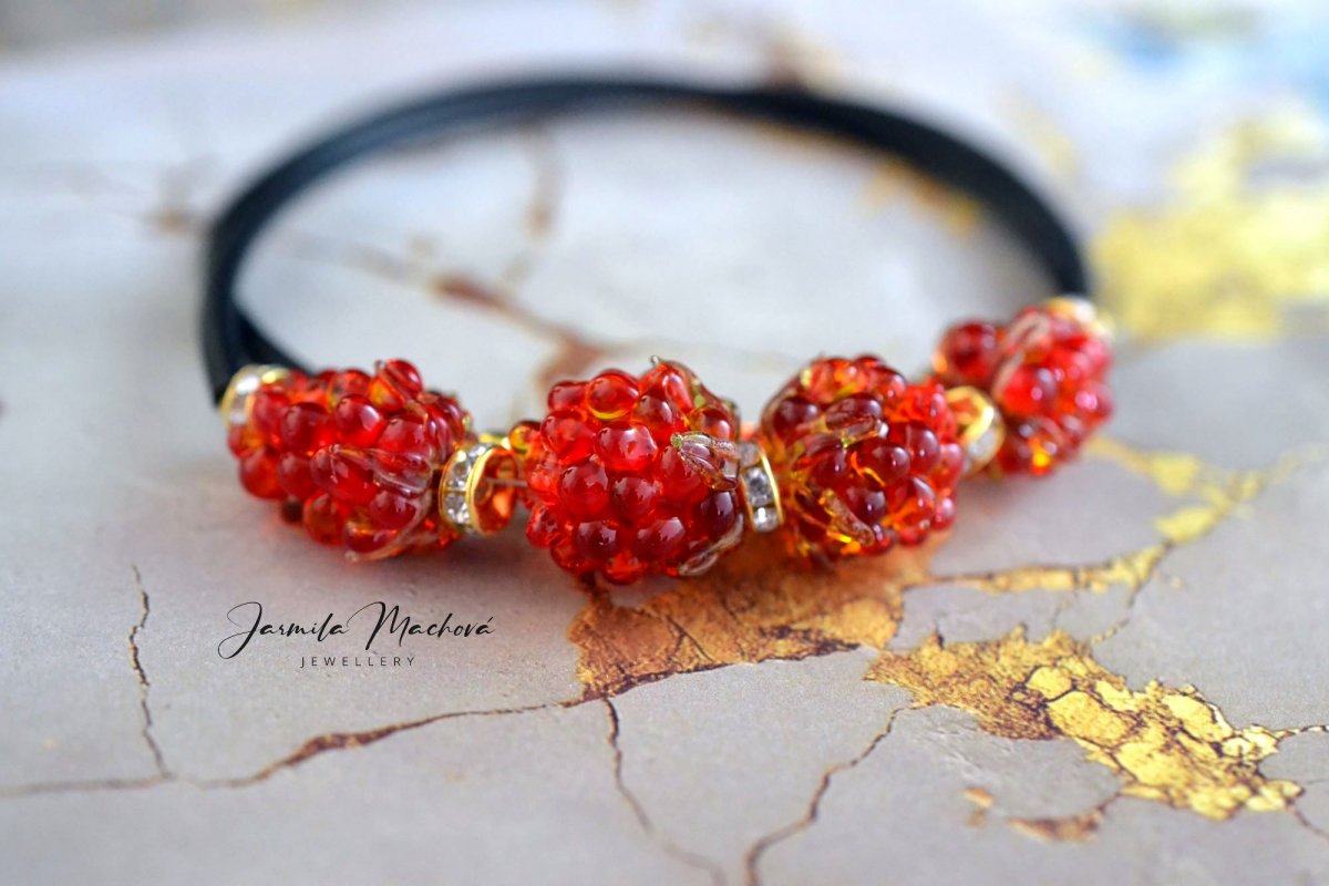 Snad Vám přijdou k chuti - maliny - vlastnoručně vinuté.....sklo