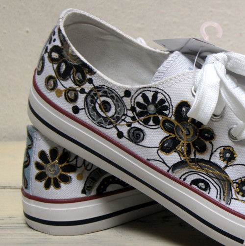 Ručně malované bílé botičky, tenisky, plátěnky
