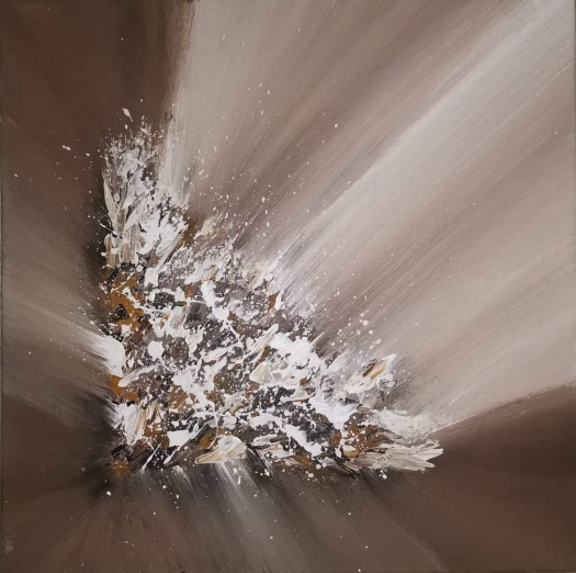 Obraz je malovaný akrylovými barvami na kvalitní bavlněné plátno, které je natažené na dřevěný rám. Velikost obrazu je 50x50 cm.