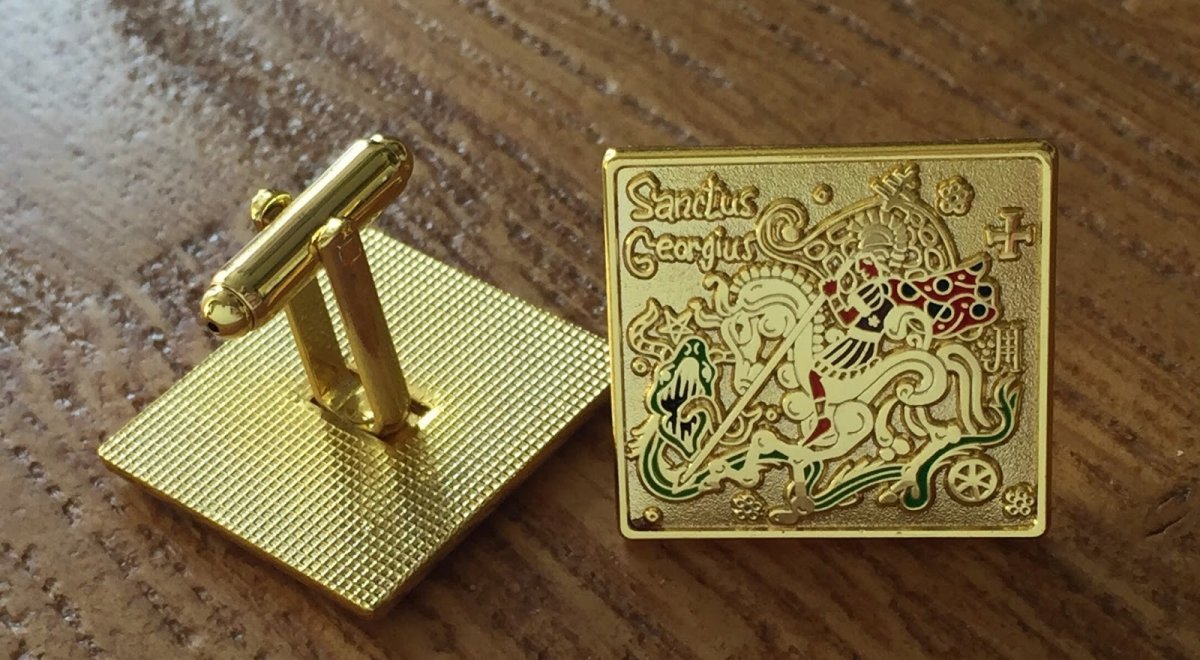 Elegantní manžetové knoflíčky inspirované jedním z nejvýznamnějších křesťanských světců – svatým Jiřím, který je znám jako statečný římský legionář a mučedník. Nejznámější legenda o jeho souboji s drakem symbolizuje vítězství dobra nad zlem.