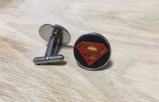 Manžetové knoflíčky se znakem Supermana. Materiál PLA - biologicky odbouratelný. Polotovar knoflíčků je z nerez oceli. Průměr cca 18mm.