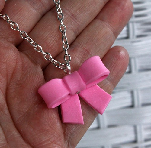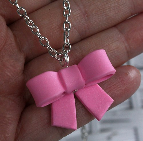 ručně modelovaný šperk z polymerové hmoty, na stříbrném bižuterním řetízku délky 46 cm + 5 cm prodlužovací řetízek, klasické zapínání v barvě stříbra, velikost fimo motivu asi 3 x 2,2 cm,