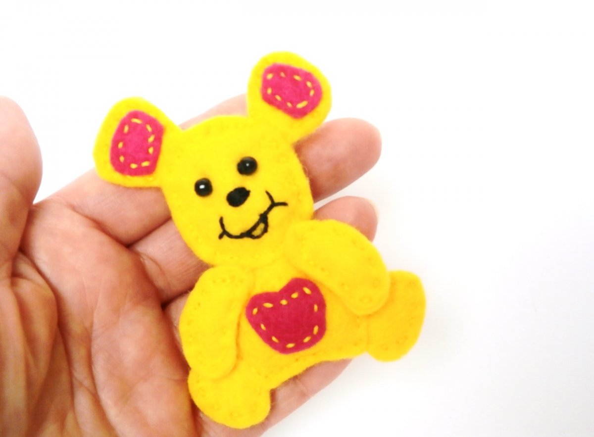 Roztomilý medvídek je ručně šitý z barevné plsti.Očička má našité z korálů.Medvídek je vyplněný vatelínem,připevněný je na brožovým můstku.