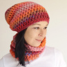 Háčkovaný dvojmo z jemnej akrylovej priadze, je veľmi teplý, príjemný na dotyk, vhodný na veľkú zimu.