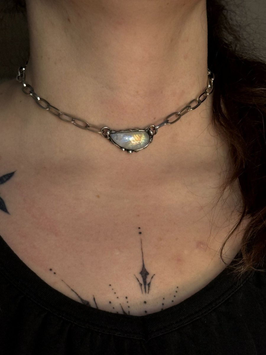 Choker z MĚSÍČNÉHO KAMENE na řetízku z chirurgické oceli.
