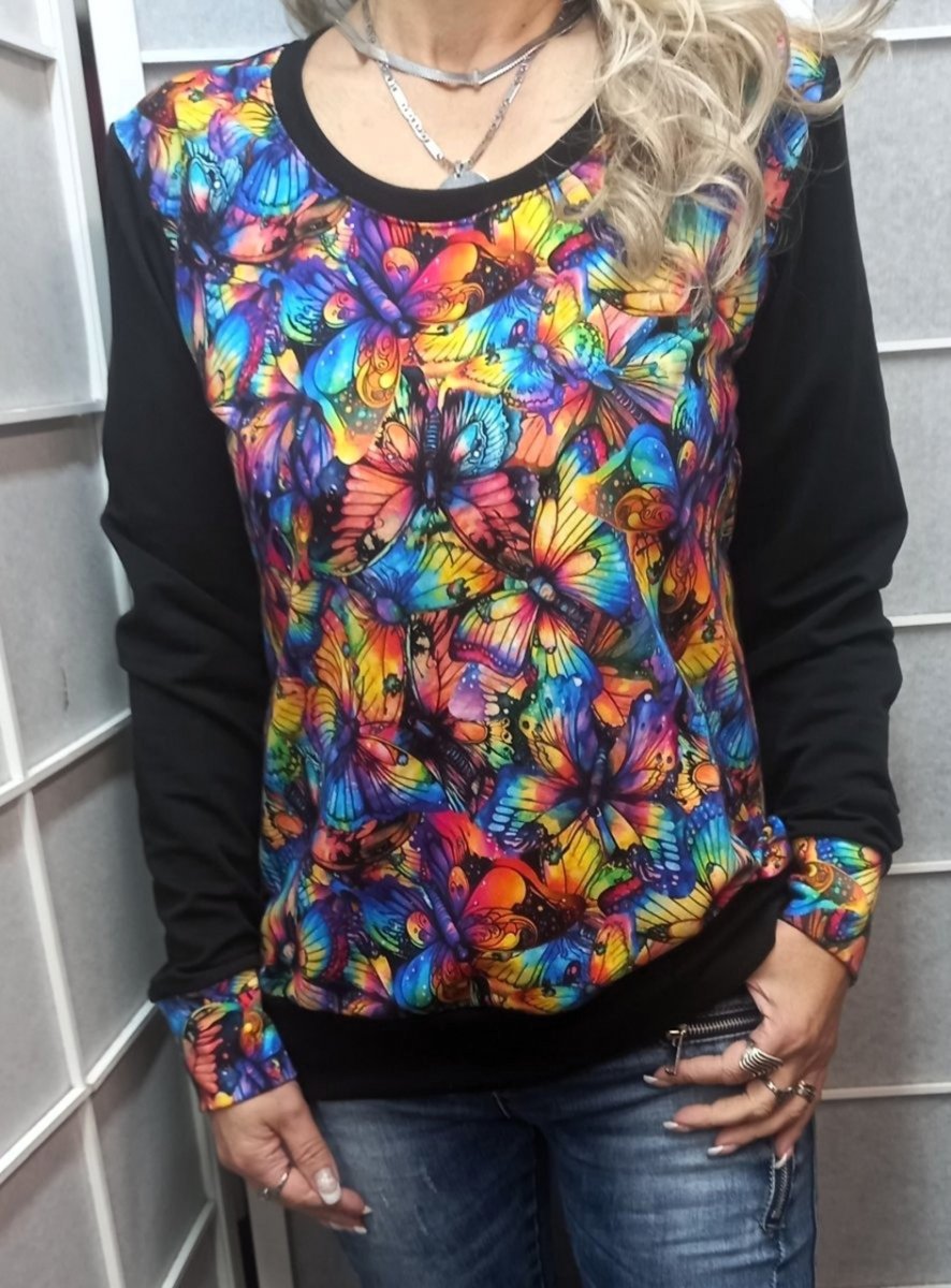 Mikina je ušitá z příjemné teplákoviny 95% bavlna, 5% elastan. Pohodlný střih, mírně projmutý, vsazené dlouhé rukávy, v pase do lemu.