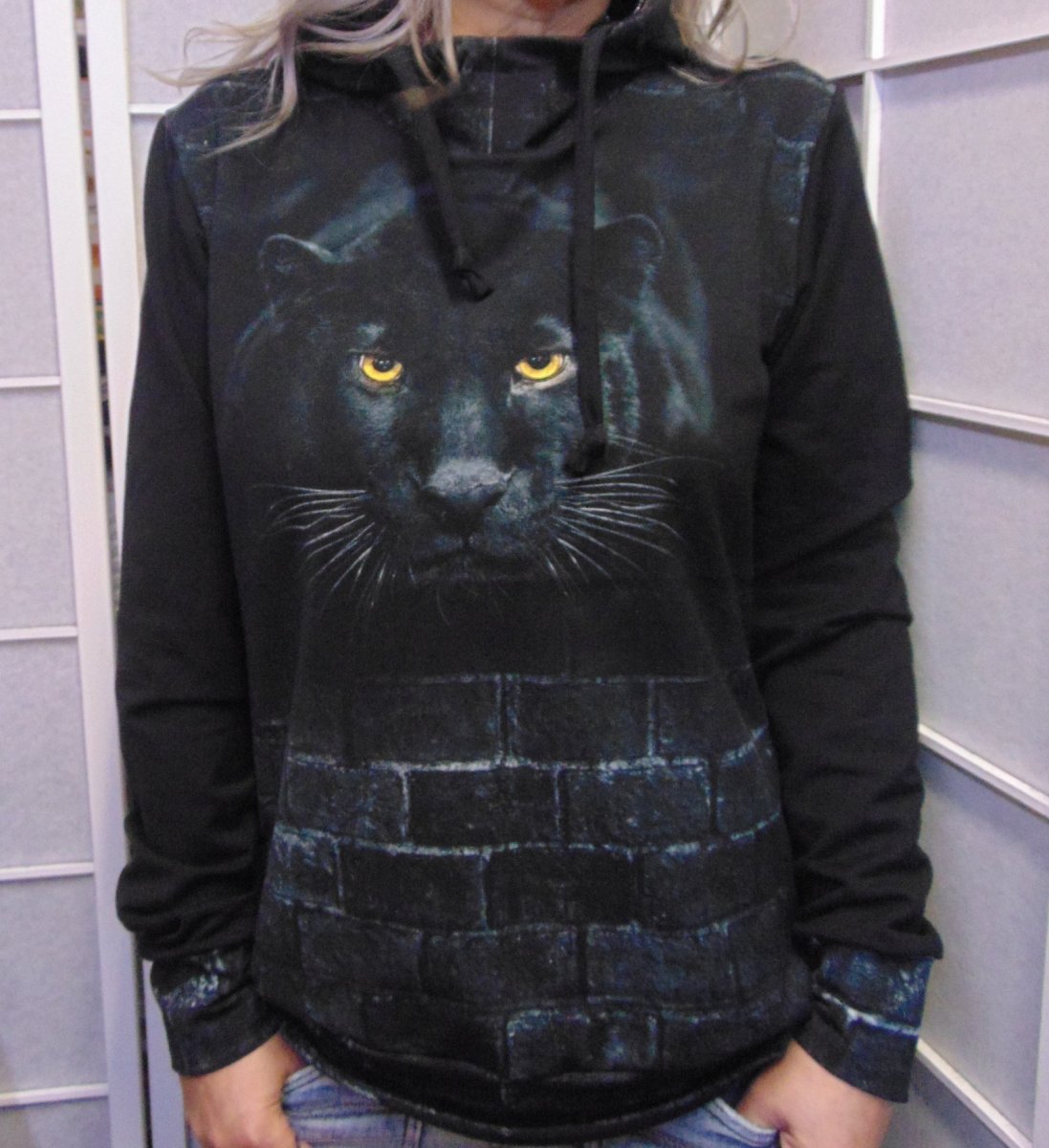 Střih je mírně projmutý v pase do lemu, kapuce je vypodšívkovaná.