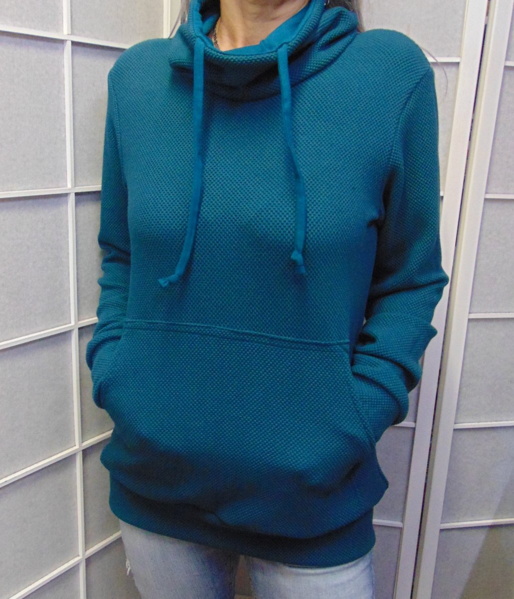 Skvělý střih: Mírně projmutá silueta podtrhne postavu, ale neomezuje v pohybu. Na předním díle je našita klokaní kapsa.