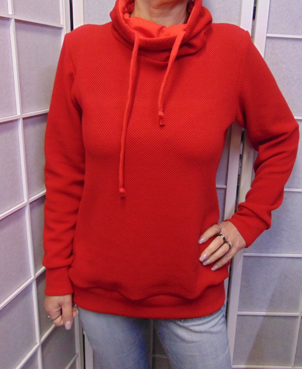 Mikina s rolákem - vaflový vzor - barva červená (teplákovina)