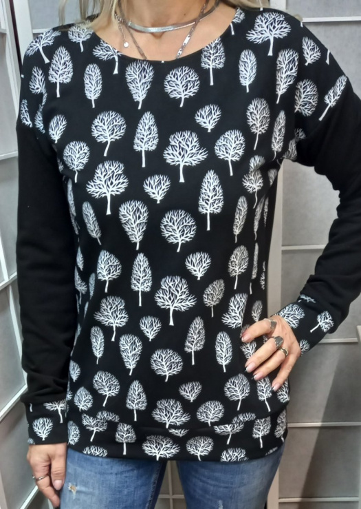 Střih je mírně projmutý, v pase do lemu, přinechaný dlouhý rukáv. Délka rukávu 62cm.