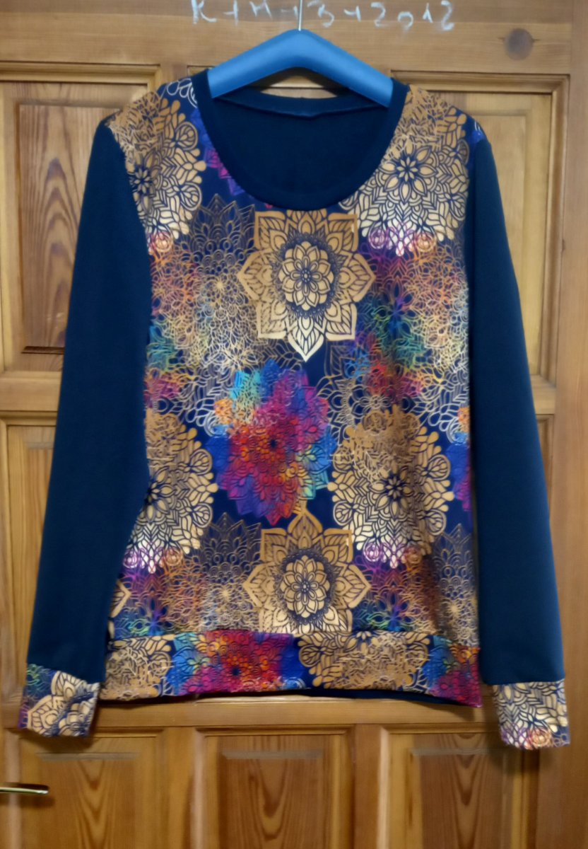 Střih je mírně projmutý, vsazený dlouhý rukáv, v pase do lemu.
