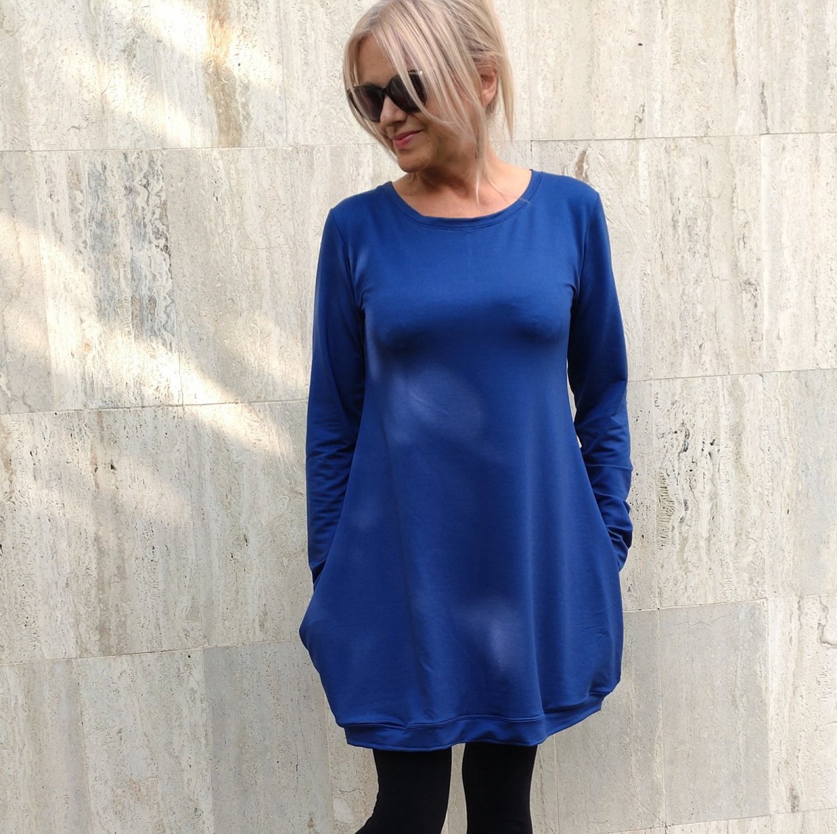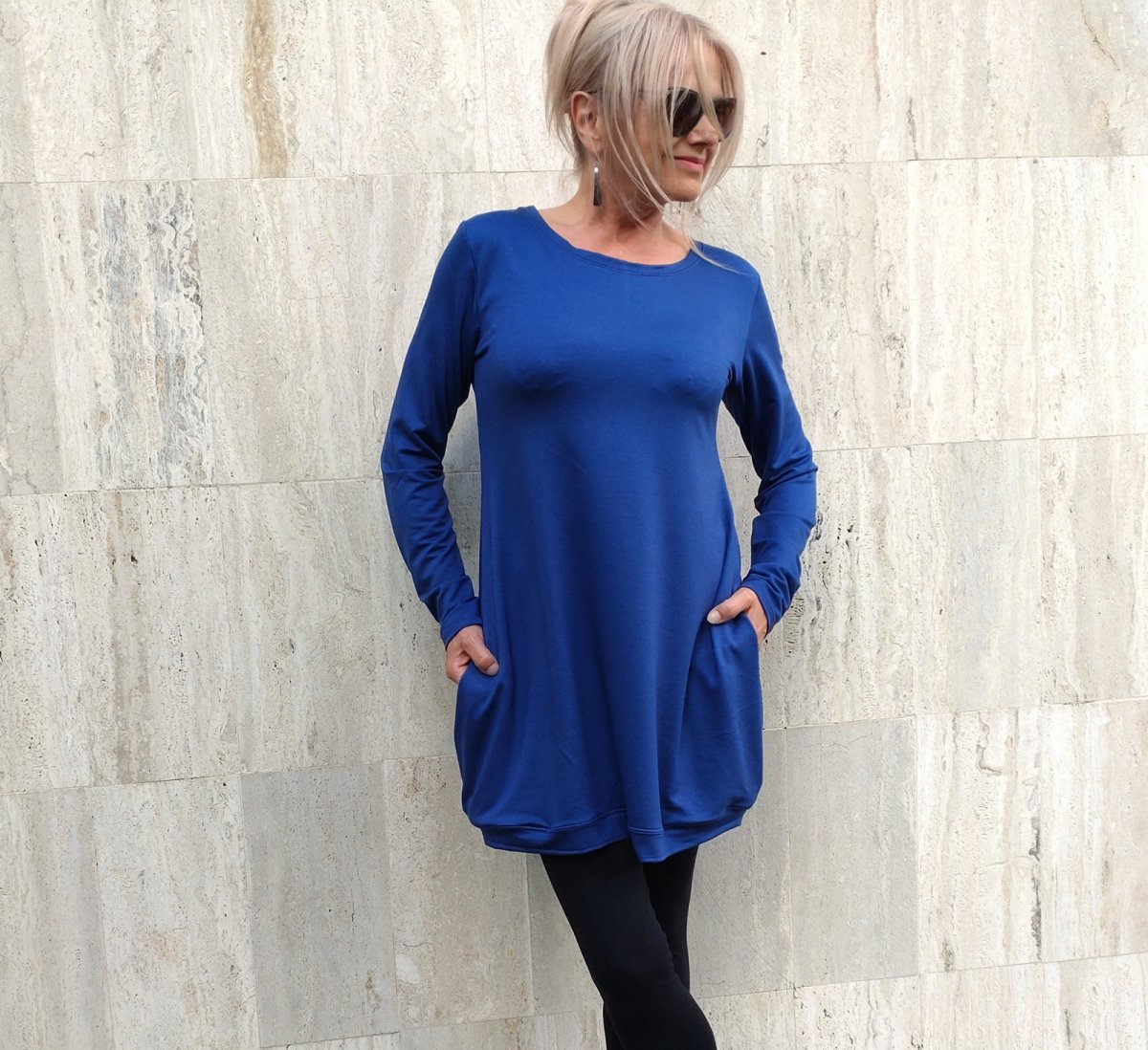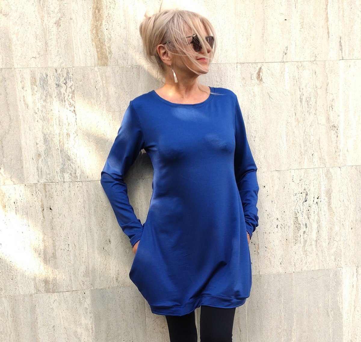 Tunika je vyrobena z tenké elastické teplákoviny ve složení viscóza/polyester/lycra. Příjemný splývavý materiál.