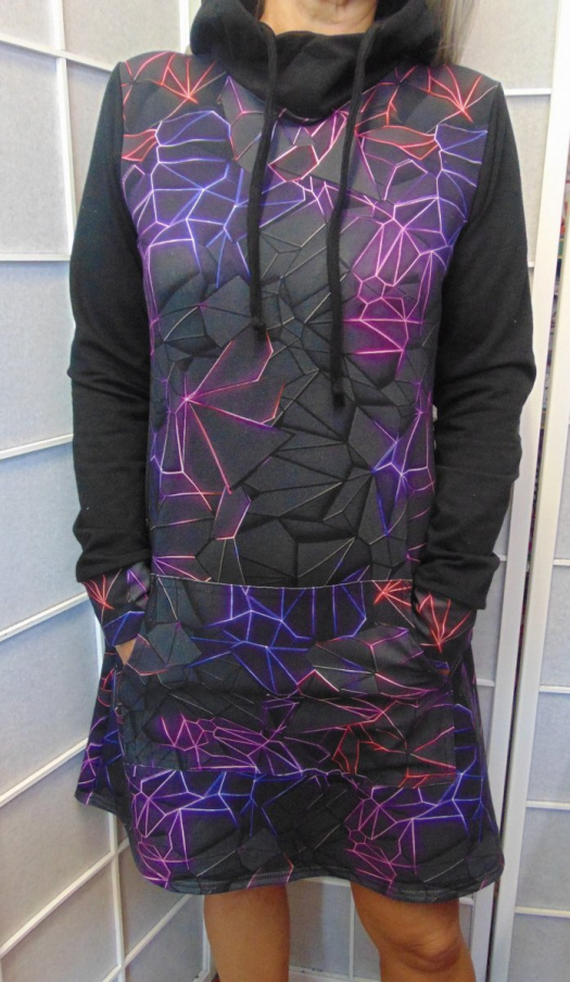 Na PD našitá klokaní kapsa, vypodšívkovaná kapuce se šnůrkou.