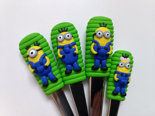 Nerezový dětský příbor 4-dílný zdobený fimo motivem. Možno vyrobit i v dospělácké variantě za stejnou cenu.