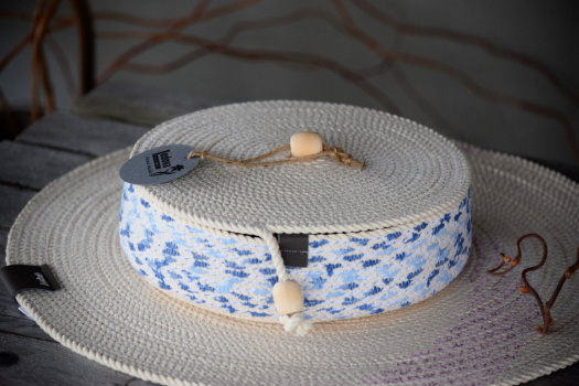 Bavlněná miska s poklopem z přírodních bavlněných provazů s modrobílým melírkem