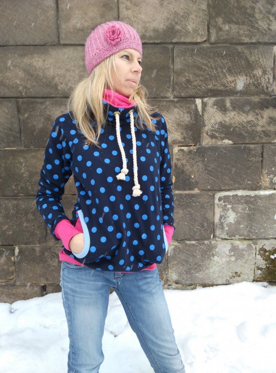 Ušito z příjemné pružné teplákoviny....modní puntík...