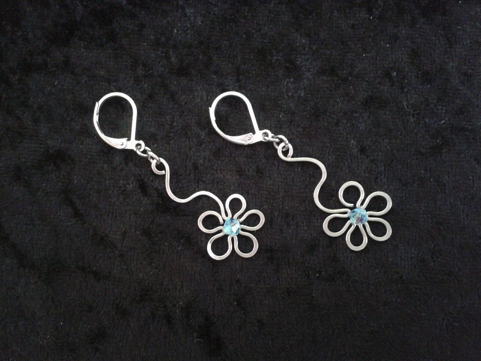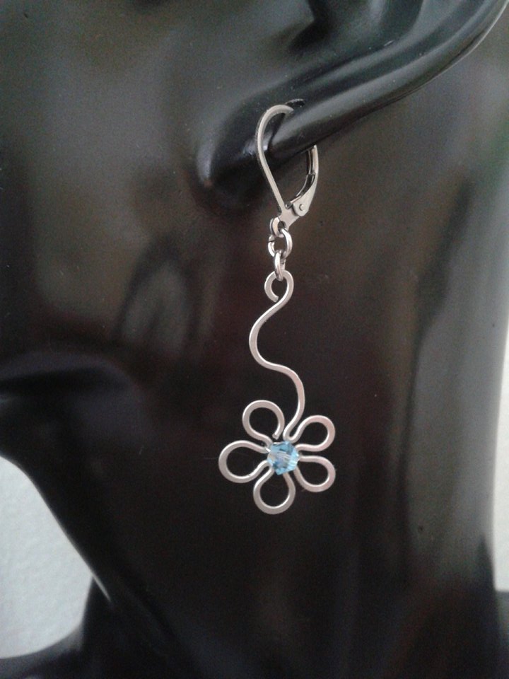 Kytičkové náušnice jsou ručně tepané z chirurgické oceli ozdobené kamínky Swarovski - světle modré.