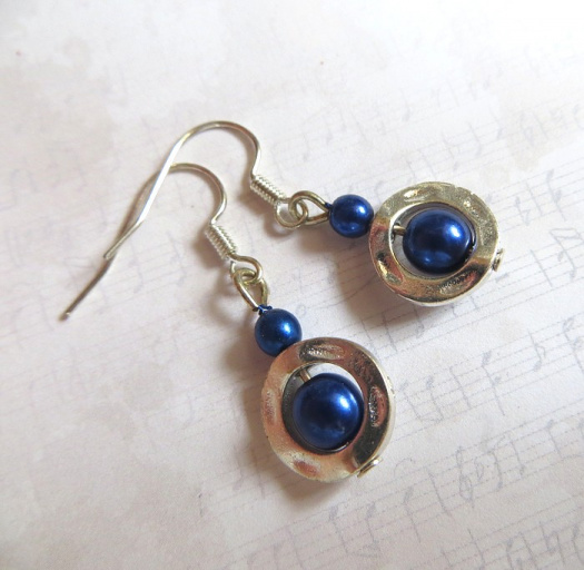 Náušnice vyrobené ze skleněných voskovaných perlí a kovových komponentů ve stříbrné úpravě. Délka náušnic bez háčků je 2 cm.