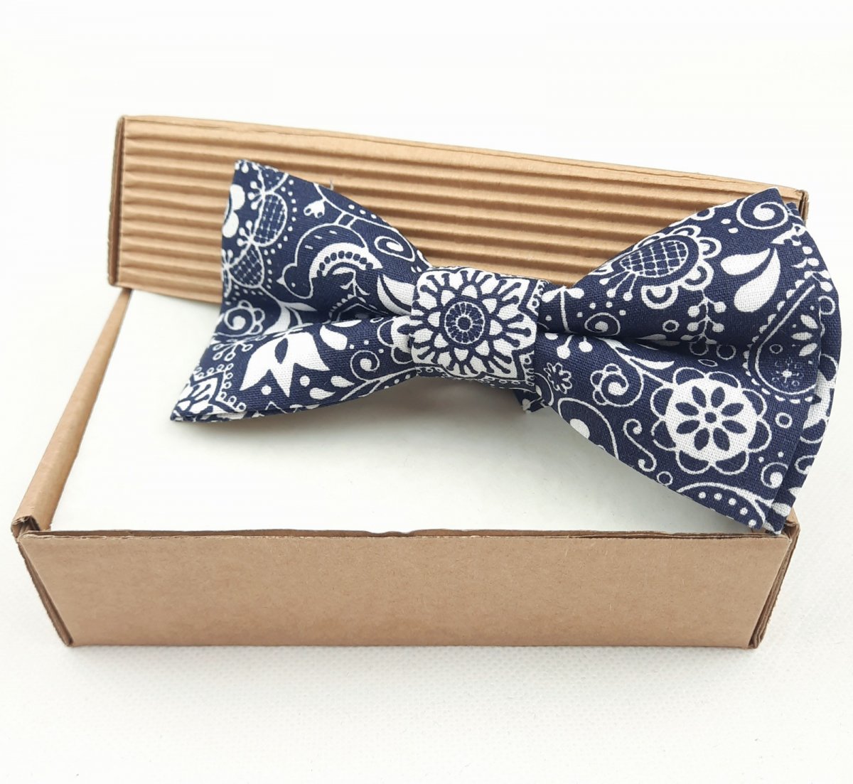 Pánsky folklórny motýlik, traky a vreckovka do saka v modrobielom prevedení s ľudovým motívom.