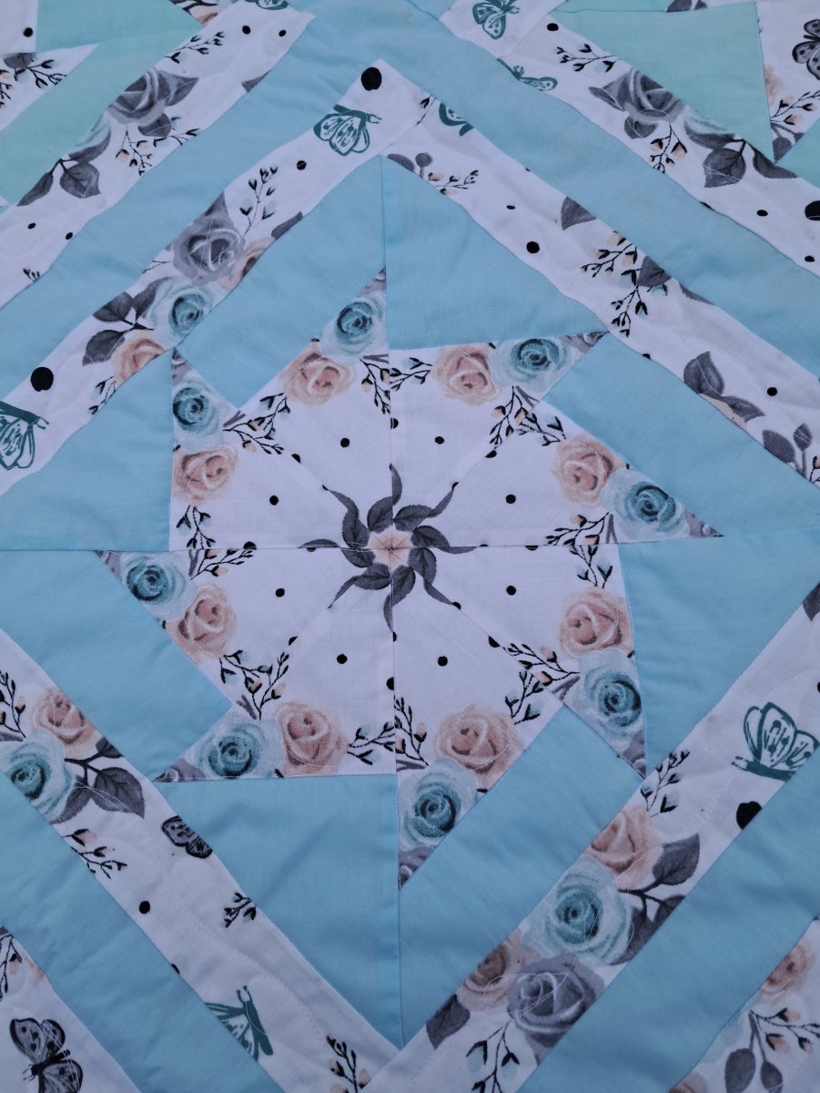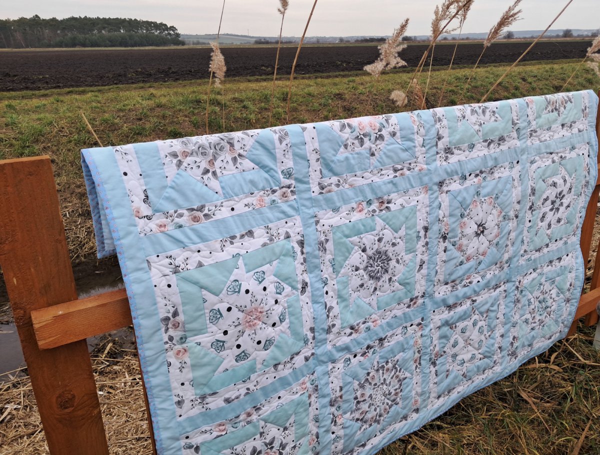 Tato jemně modrá patchworková deka je přímo stvořená pro letní dny ať zalité sluníčkem, nebo pro dny letního deštíku.Vždy bude při ruce na lehnutí nebo jako přehoz přez záda při chladnějších večerech.