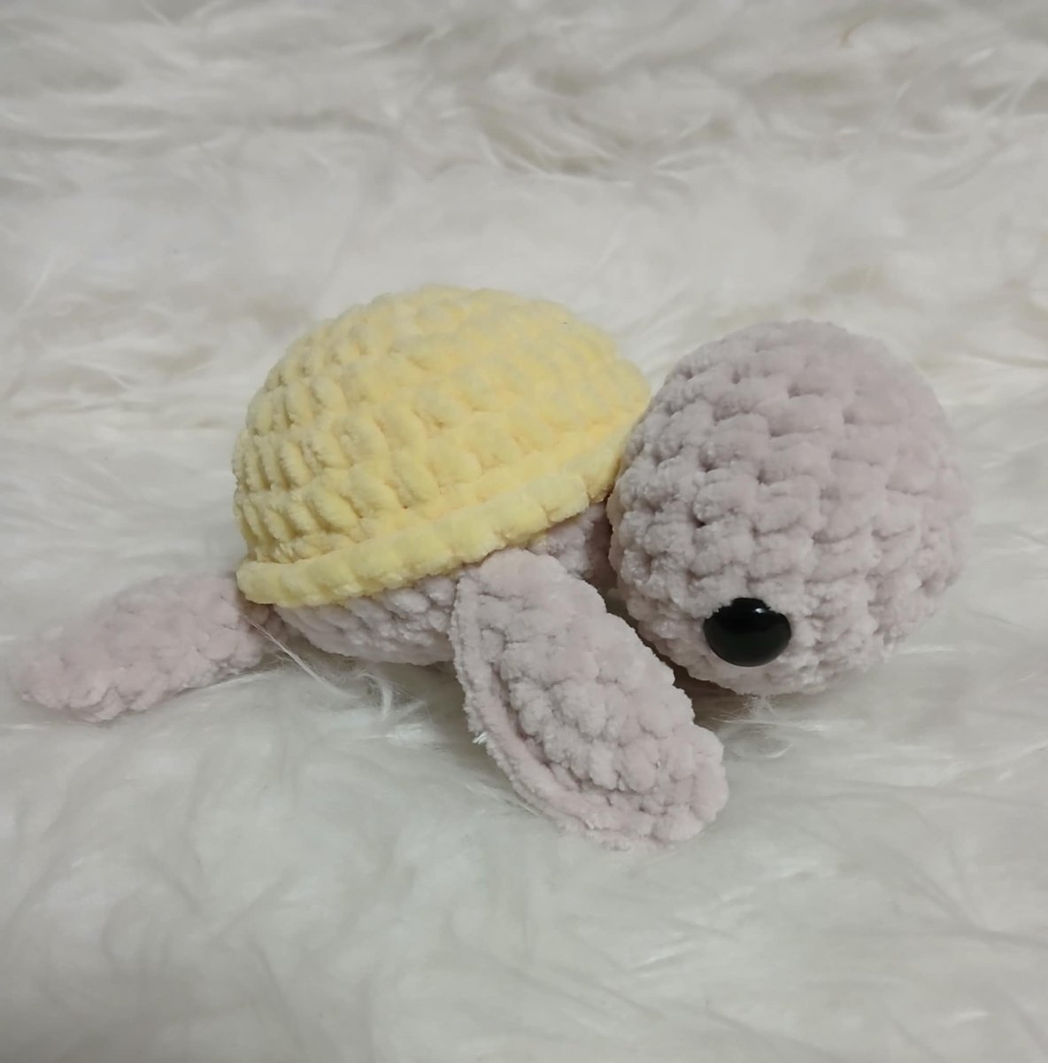 Želvička má vše pečlivě přišité. Naplněný dutým vláknem, zatavená bezpečnostní očička.