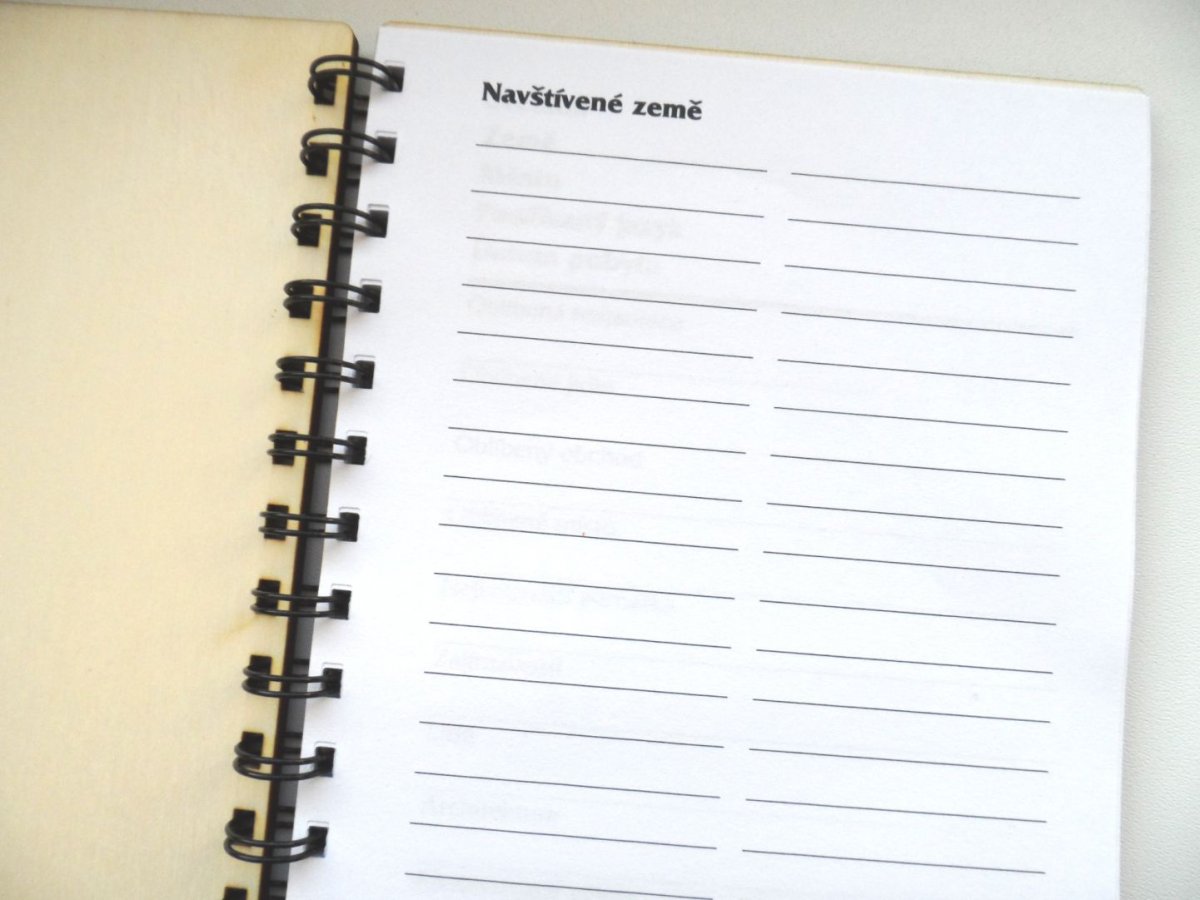 Na první straně je prostor, kam si můžete vepsat všechny navštívené země. Na každém dalším listu potom formulář pro jednotlivé destinace a informace o nich (vždy však pouze z jedné strany listu). Celkem je tam tedy 39 formulářů.