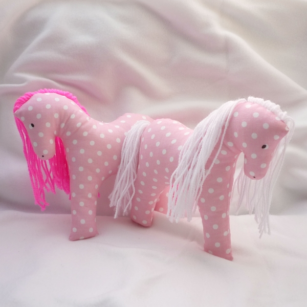 Barva: světle růžová s bílými puntíky + zářivě růžová hříva a ocas.