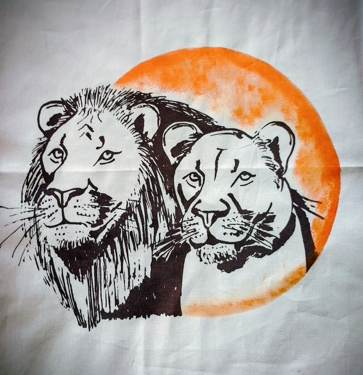 Stylový polštářek v přírodních barvách s motivem krále zvířat lvem a lvicí.