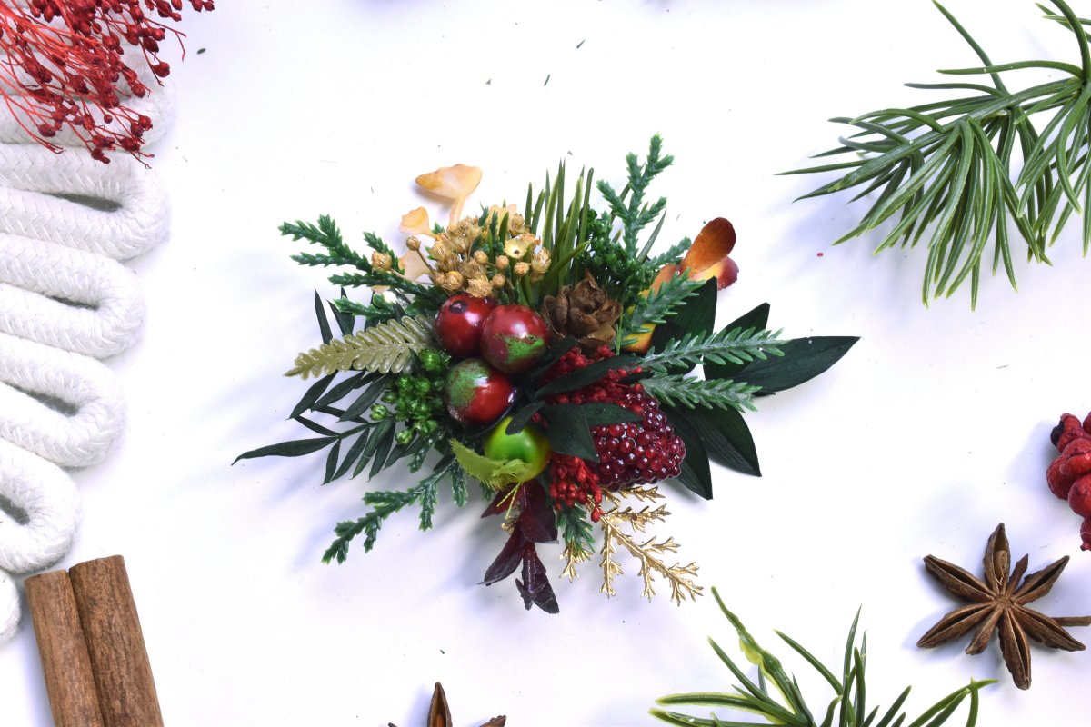 Vánoční sponečka či brož s bobulkami a šiškou, která prozáří každý účes a nebo kabát. Krásný doplněk do zimní či předvánoční doby.