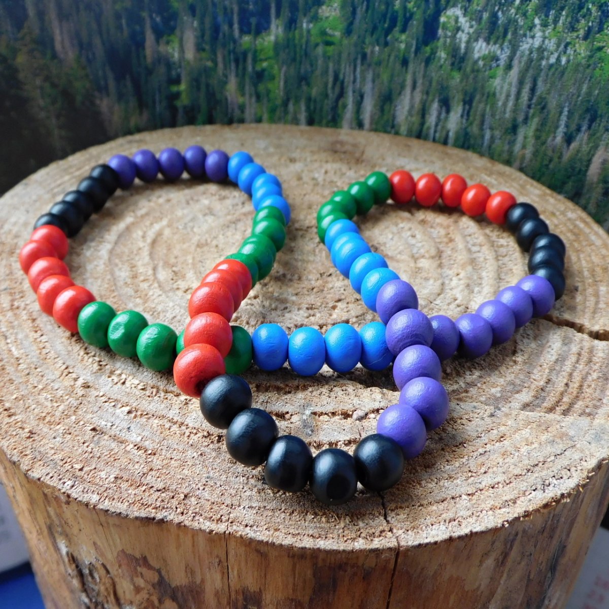 Dřevěné korálky navlečené na pevné gumičče. Délka je 47 cm. Přetahuje se přes hlavu.