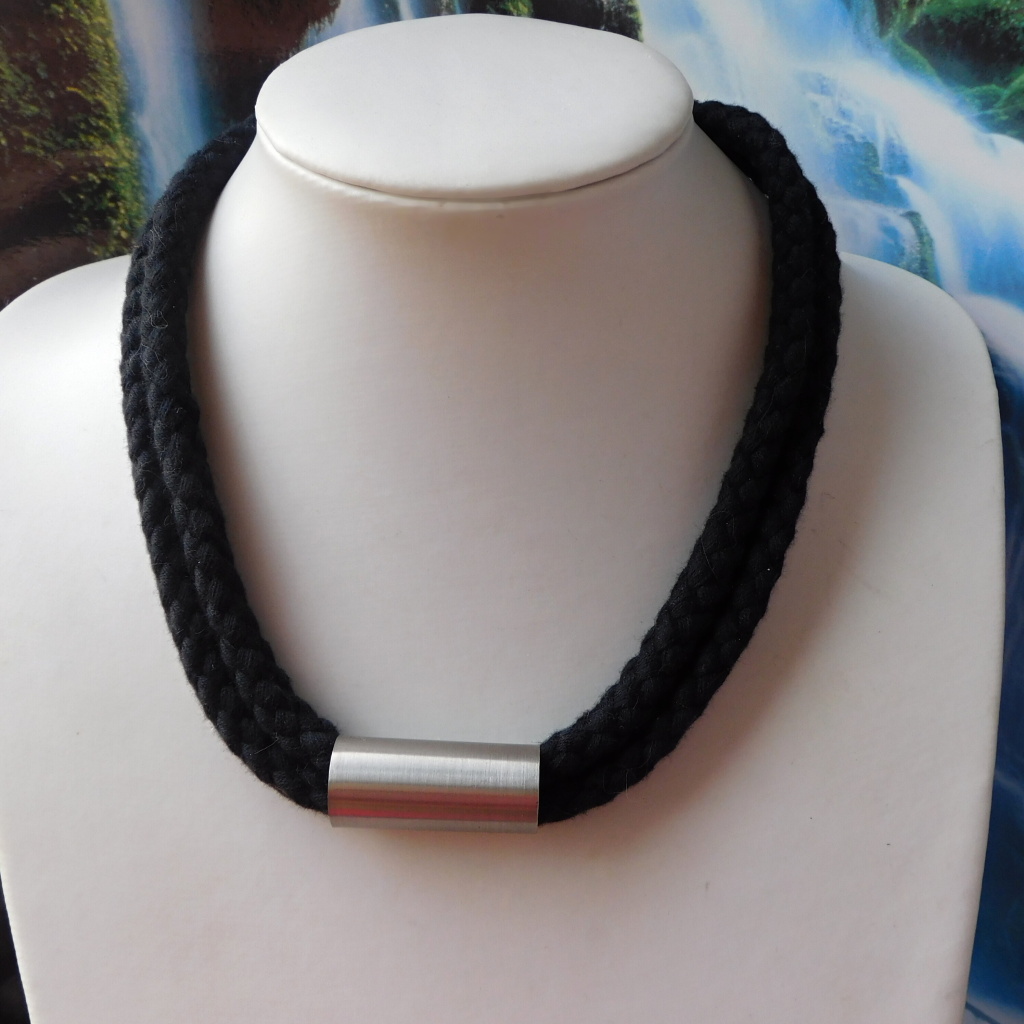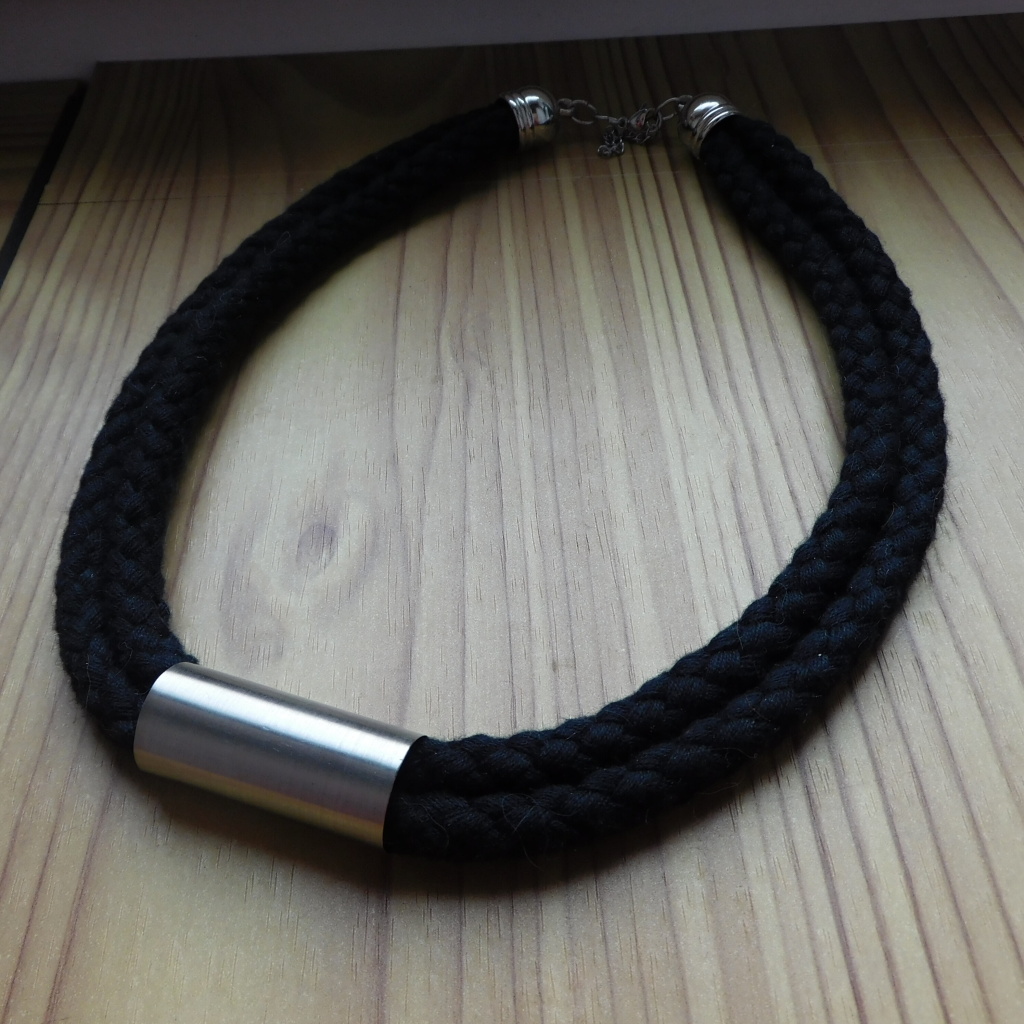 Lanový náhrdelník z dvojitého černého lana a oručně vyrobené,silnější leštěné trubičky.