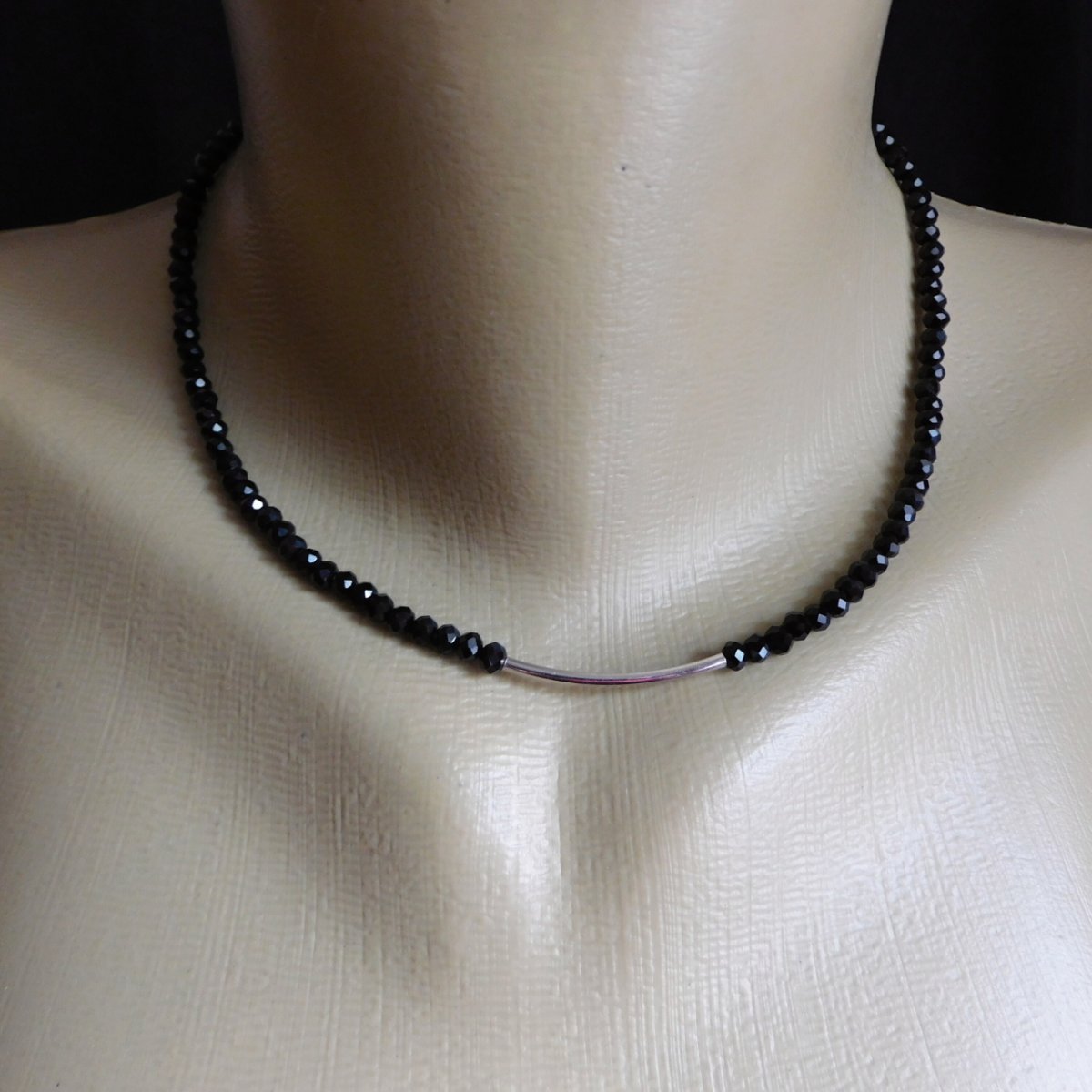 Náhrdelník je vyrobený z malých černých broušených kamínku spinel,nerezové spirálky......