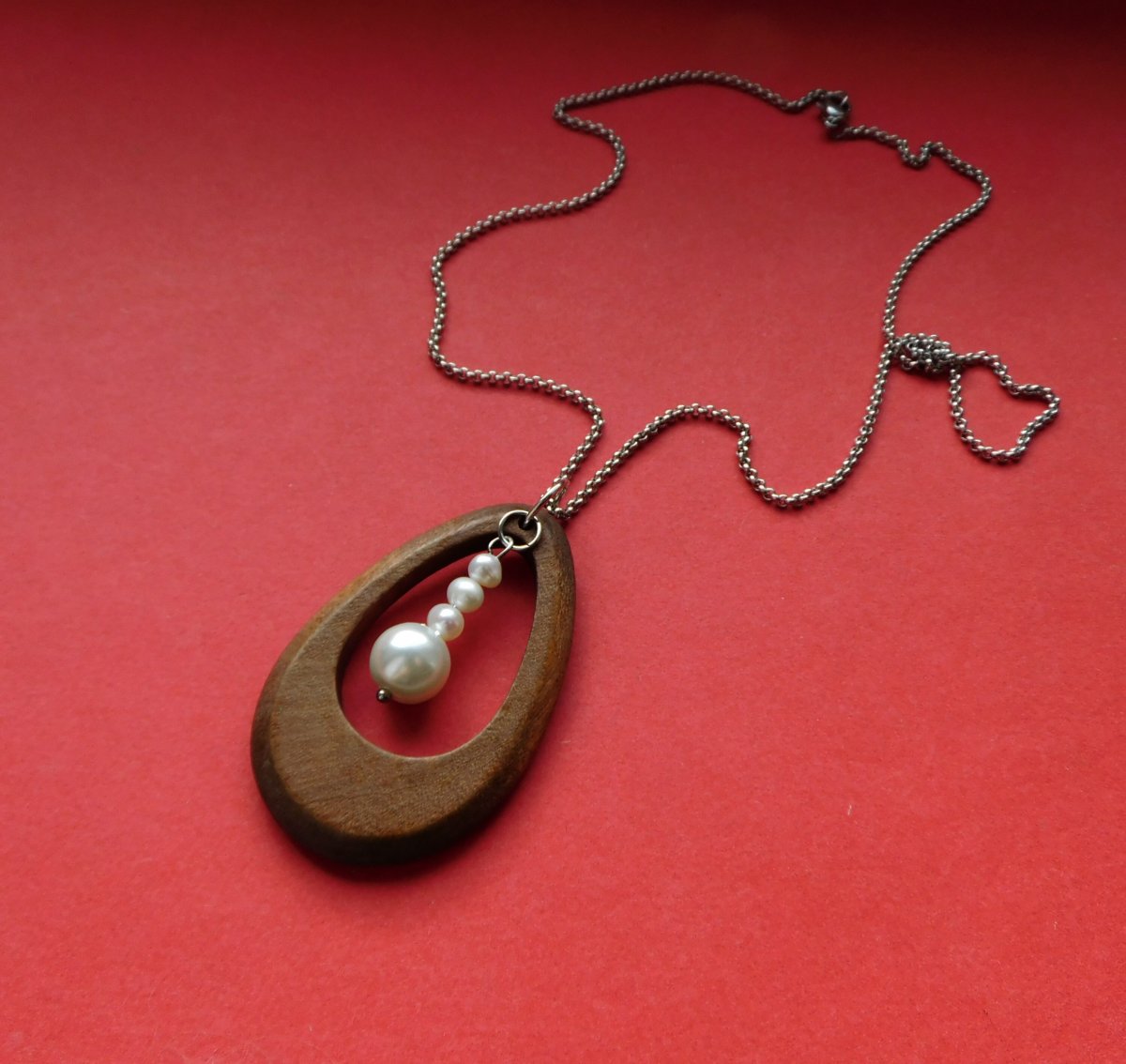 Nabízíme Vám pěkný větší originální přívěšek.....zdobí ho 3 malé říční perličky a jedna větší.....