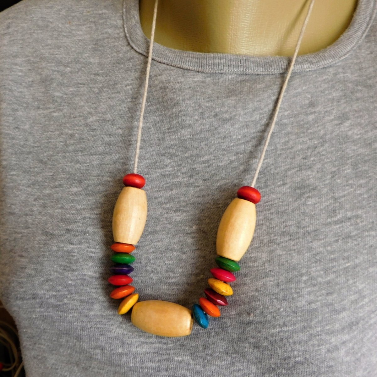 Dřevěný náhrdelníček , stále moderní korálky, navlečeno na cottonu.