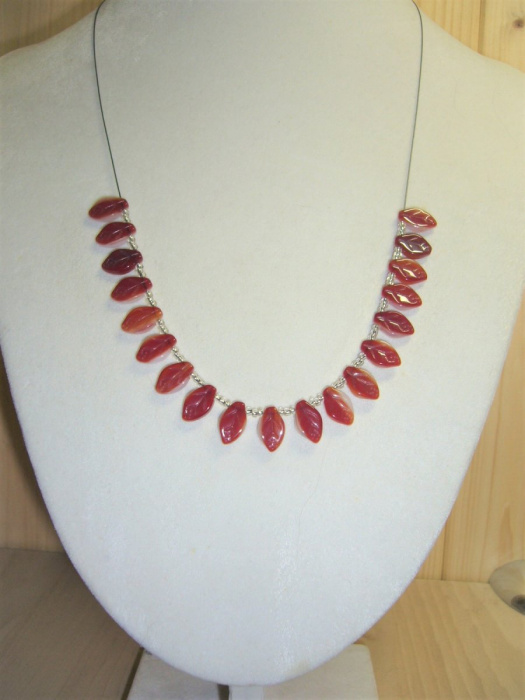 Velikost korálků ve tvaru lístků je cca 11 x 7 mm.