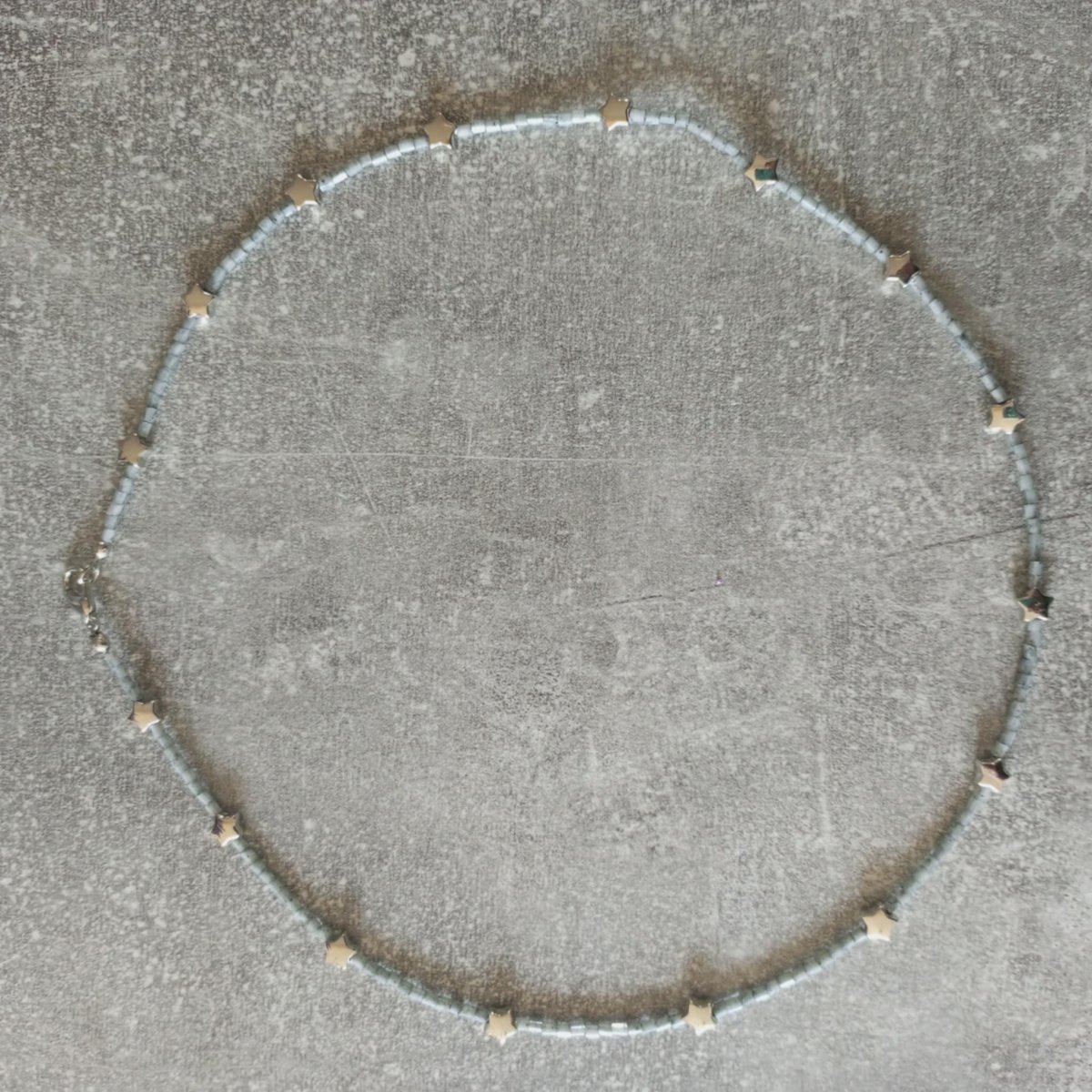 Náhrdelník ze skleněných rokajlových korálků s ozdobnými hvězdičkami z CCB materiálu.