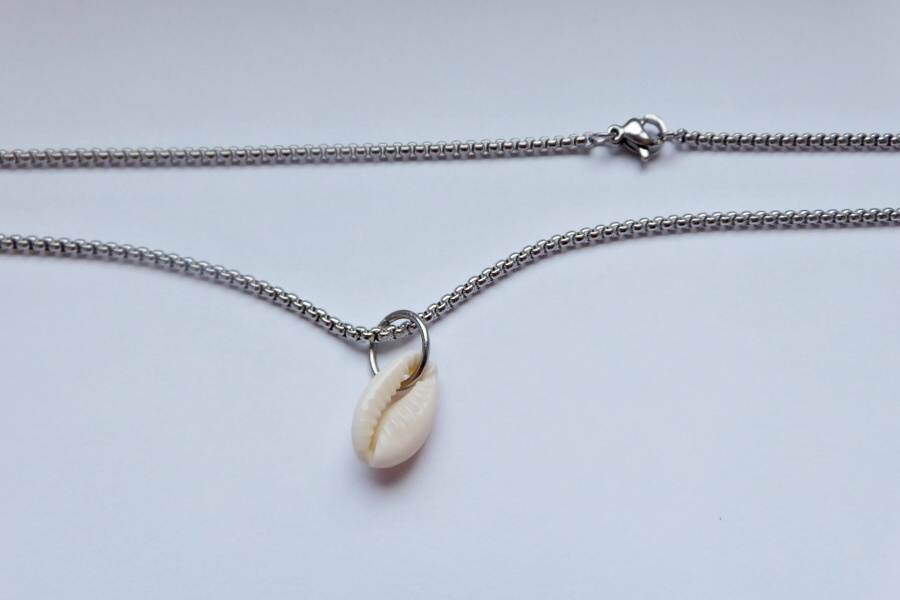 Náhrdelník, nerezová ocel , bílá pravá mušle